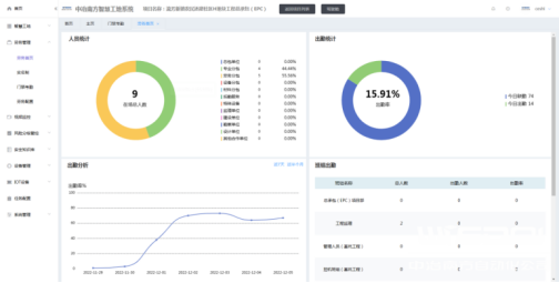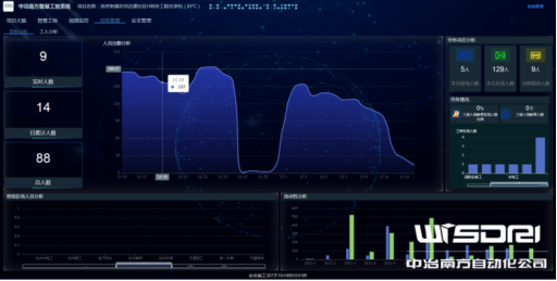 中冶南方自动化智慧工地管理平台实时采集项目现场人员进出信息,利用AI智能算法,对现场人员出勤、滞留情况进行监测,能够实现实名登记、安全教育、考勤管理、人员定位、工资监管、现场管理等相关数据统计分析,清晰掌握项目现场人员状况。